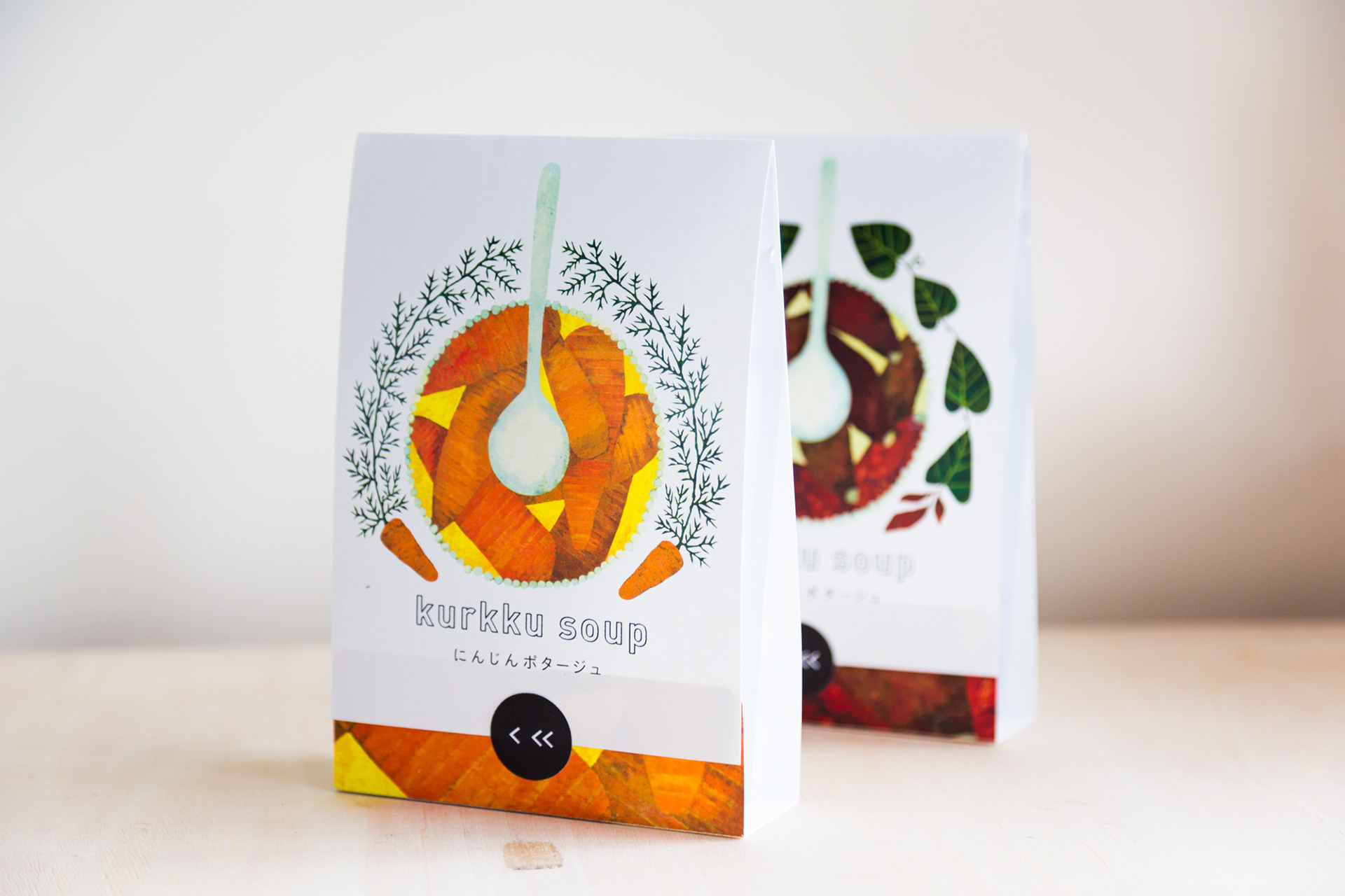 小林武史さん率いるkurkkuのスイーツシリーズのパッケージ。イラストレータの福田俊之さんとご一緒させていただいています。
